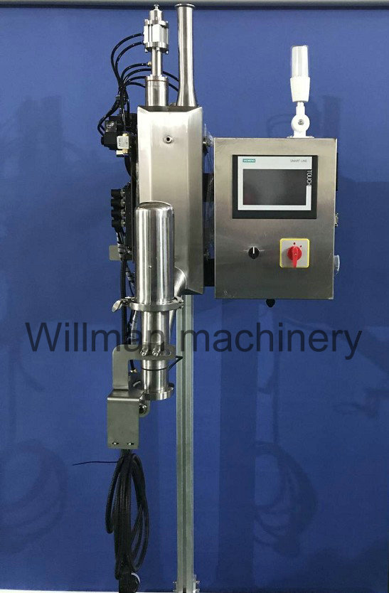 液氮加注機包括固定座、設(shè)有進液口和出液口并與固定座固定連接的保溫儲存筒、保溫加注頭、兩端分別與出液口和保溫加注頭連接的保溫輸液管。液氮加注機使用時,進液口與真空液氮輸送管道連接,需要加注液氮時,保溫儲存筒經(jīng)保溫輸液管通過保溫加注頭將液氮加注入鋁罐中;液氮加注機也可以用于其他食品軟包裝的液氮加注。并且液氮加注機結(jié)構(gòu)緊湊用于非碳酸飲料鋁罐液氮加注操作方便和液氮純液相質(zhì)量較好。